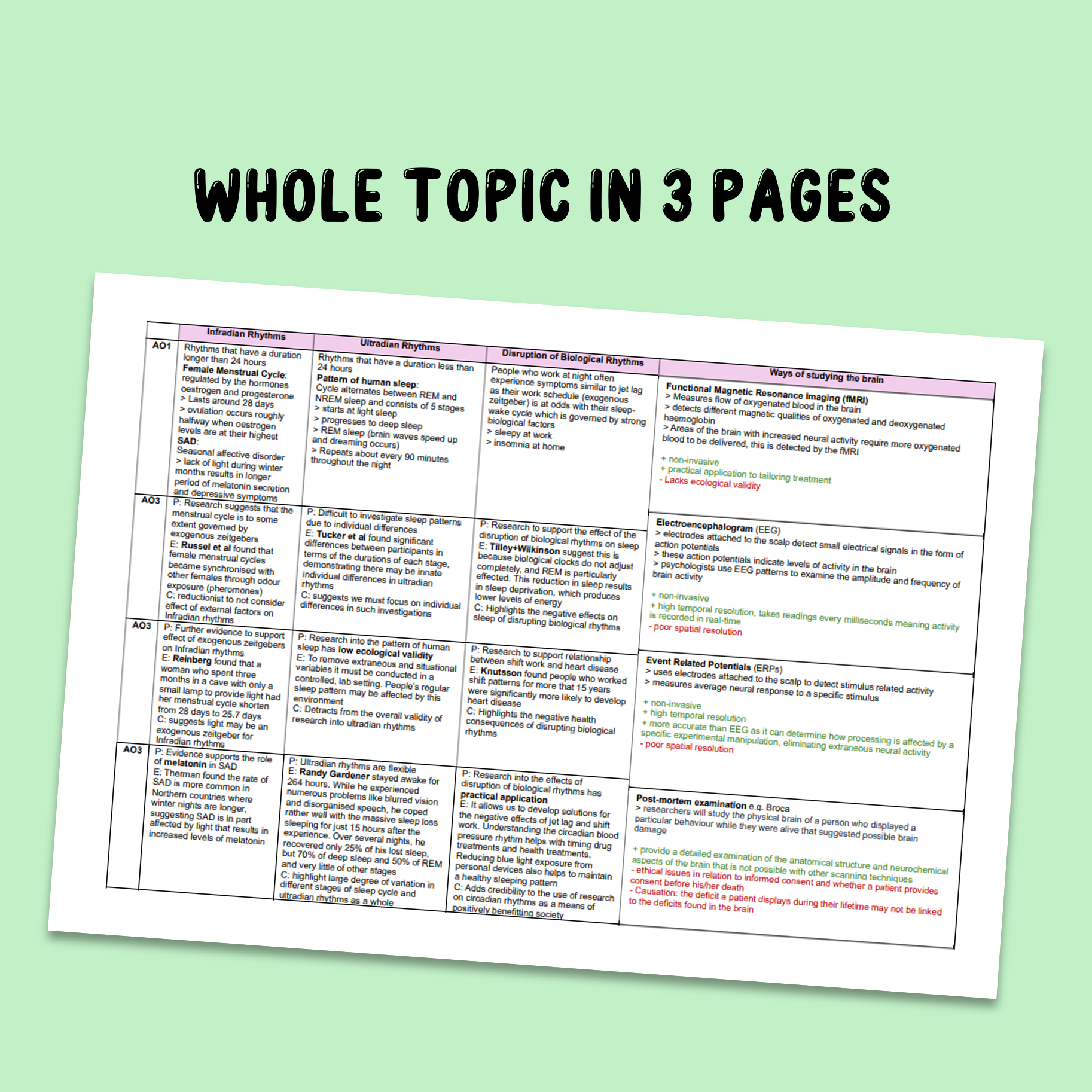 Contains all the Biopsychology AO1 and AO3 content you need to get an A*
