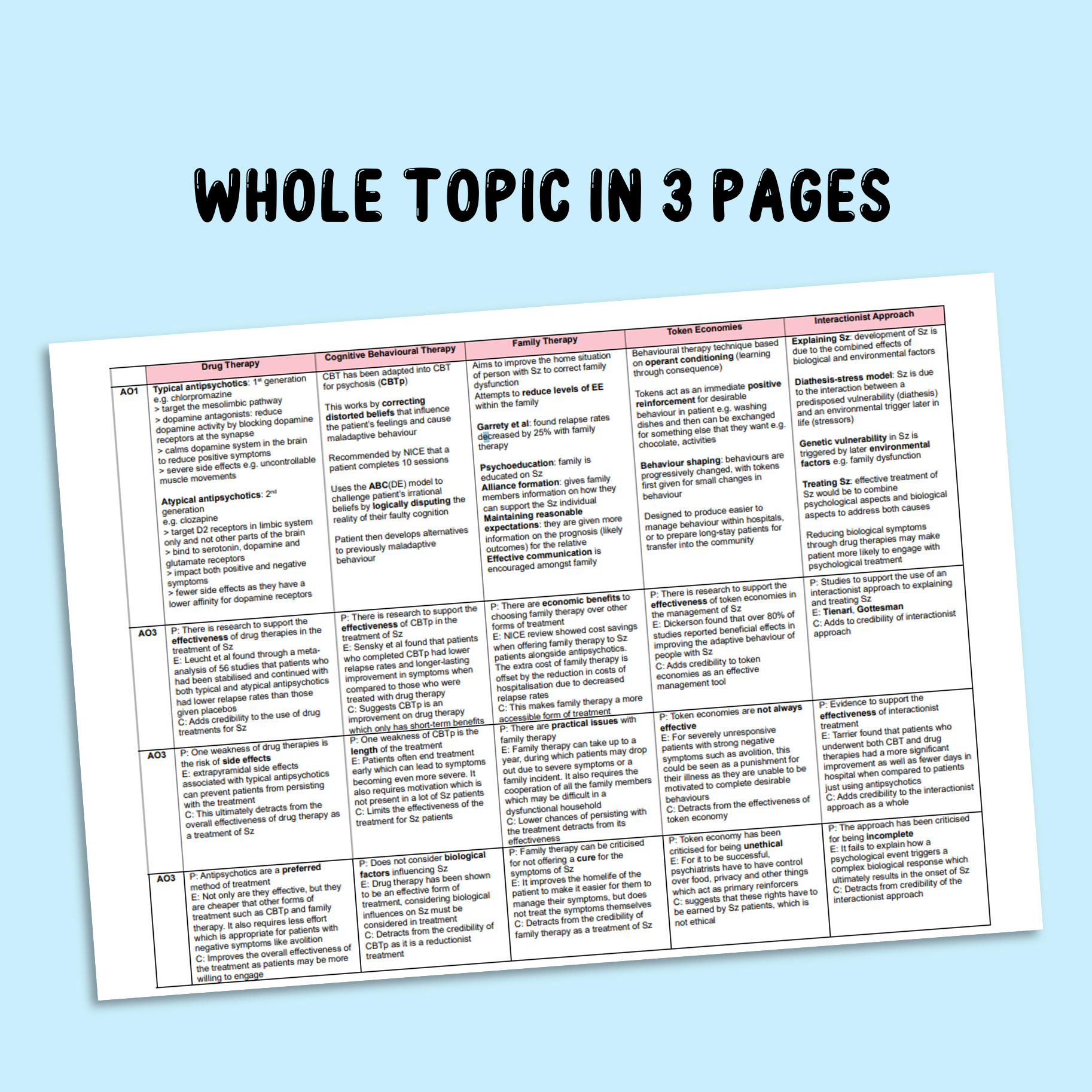 Contains all the Schizophrenia AO1 and AO3 content you need to get an A*
